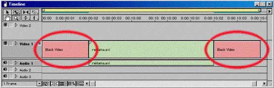 Potrebno je postaviti dva frejma (2) crnog na početku i na kraju izmontiranog materijala, i postaviti žutu liniju kao na slici.