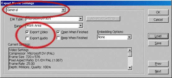 Vratiti nazad opciju "General" iz ponudjenog Drop down menija pa odvojeno exportovati samo video...